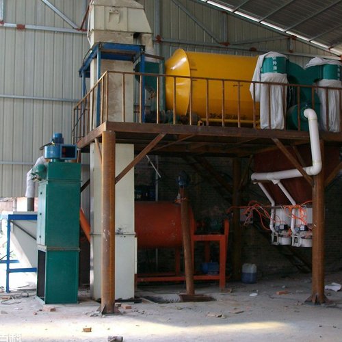 是根据生产厂家的厂房和投资规模来设计的。成本低,工艺合理。也需配置自动计量,电脑操作系统。可生产外墙外保温砂浆、自流平砂浆、修补砂浆、防水砂浆、彩色装饰砂浆、内外墙腻子、瓷砖粘结剂、填缝剂等等。适合于中型企业。